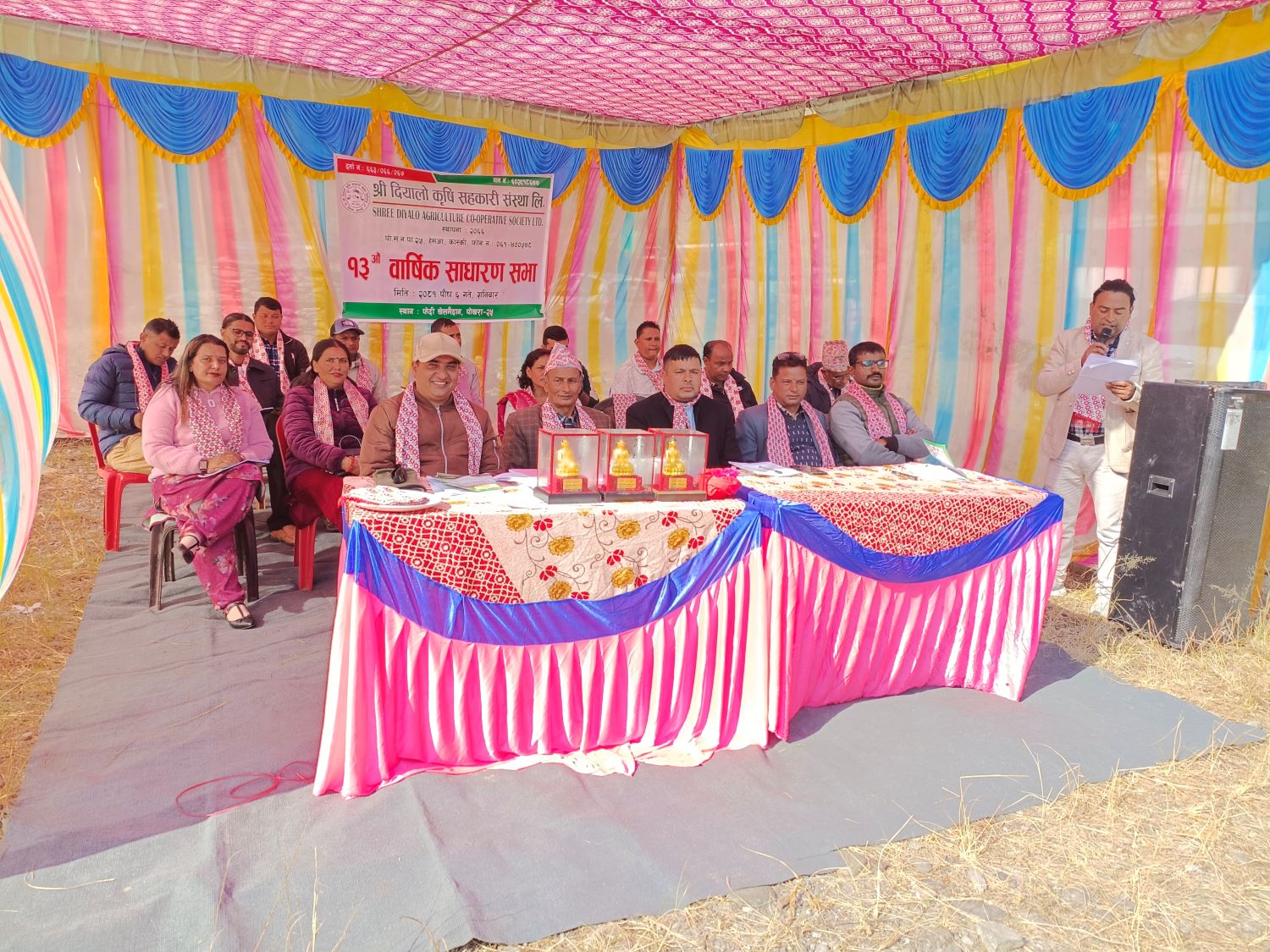 दियालो कृषि सहकारी संस्थाका अध्यक्ष मोहन प्रसाद त्रिपाठीको अध्यक्षतामा भएको कार्यक्रममा उपाध्यक्ष कुलप्रसाद त्रिपाठीले स्वागत, सदस्य मनिषा पोख्रेलले सहकारीका सात सिद्धान्त र सचिव वेदराज त्रिपाठीले कार्यक्रम सञ्चालन गर्नुभएको थियो ।