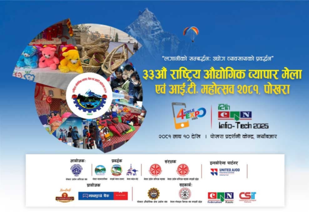 पोखरा । पोखराको नयाँबजारमा रहेको प्रदर्शनी केन्द्रमा भोलिबाट राष्ट्रिय औद्योगिक व्यापार मेला एवं आइटी महोत्सव २०८१,१२ औं क्यान इन्फोटेक २०२५ तथा चौथो मोवाइल एक्सपो २०२५ आयोजना हुँदैछ ।