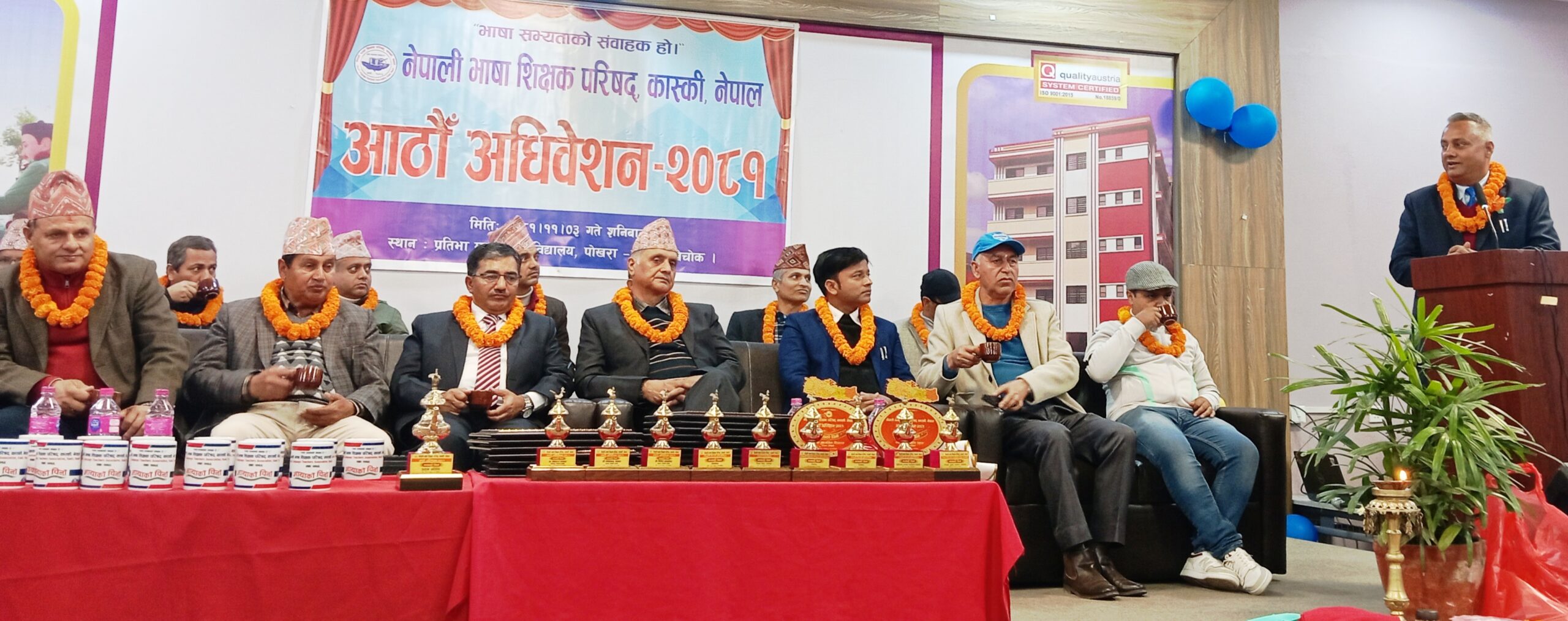 पोखरा । कास्कीका नेपाली भाषा शिक्षकहरुको साझासंस्था नेपाली भाषा शिक्षक परिषद् कास्कीको आठौँ अधिवेशन शनिवार सम्पन्न भएको छ । अधिवेशनले सूर्यप्रसाद लम्सालको अध्यक्षतामा १५ सदस्यीय नयाँ समिति चयन गरेको छ समितिको वरिष्ठ उपाध्यक्षमा विक्रम पौडेल ,उपाध्यक्षमा इन्दिरा सापकोटा ,महासचिवमा शिवहरि सुवेदी ,सचिव शशि शिशिर ढुङ्गाना, कोषाध्यक्ष हरिप्रसाद ढुङ्गाना र सदस्यहरूमा प्रेमनारायण ढकाल,पोष्टराज सुवेदी,भावना लामिछाने, ध्रुववन्धु रिजाल, होमनाथ भट्टराई अमृत पौडेल ,झलकनाथ आचार्य ,रत्नाकुमारी विश्वकर्मा र सावित्री पहारी भट्टराई निर्वाचित भएका छन्। निर्वाचन मण्डलमा संस्थाका सल्लाहकार बोधराज ढकाल ,लोकचन्द्र खनाल र दिनेश सापकोटा रहेका थिए । भाषा सभ्यताको संवाहक हो भन्ने मूल मन्त्रका साथ वि सं २०६६मा स्थापित नेपाली भाषा शिक्षक परिषद् कास्की नेपालको पन्ध्रौँ वार्षिक साधारण सभा तथा आठौँ अधिवेशन प्रतिभा माध्यमिक विद्यालय पोखराको सभाहलमा परिषद्का अध्यक्ष डिल्लीराम अर्यालको अध्यक्षतामा सम्पन्न भएको हो ।