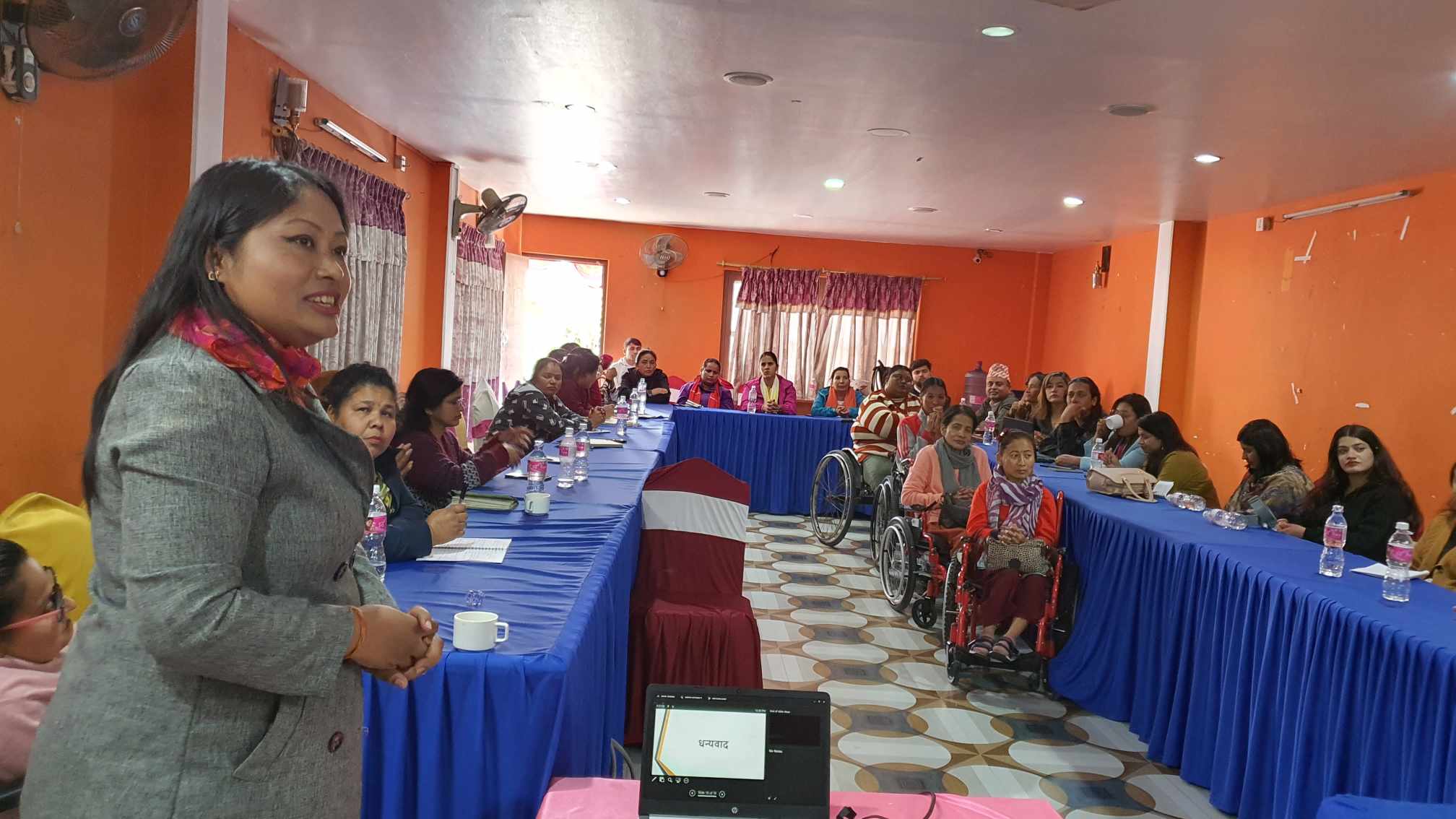 अपाङ्ग महिला सशक्तिकरण केन्द्र कास्कीका अध्यक्ष अञ्जना केसीले अपाङ्गताका अधिकार सुनिश्चितताका लागि विभिन्न राष्ट्रिय र अन्तराष्ट्रिय कानुनी प्रावधानको बारेमा जानकारी गराउँदै आफ्नो हकको लागि आफै अग्रसर हुनुपर्नेमा जोड दिनुभयो ।