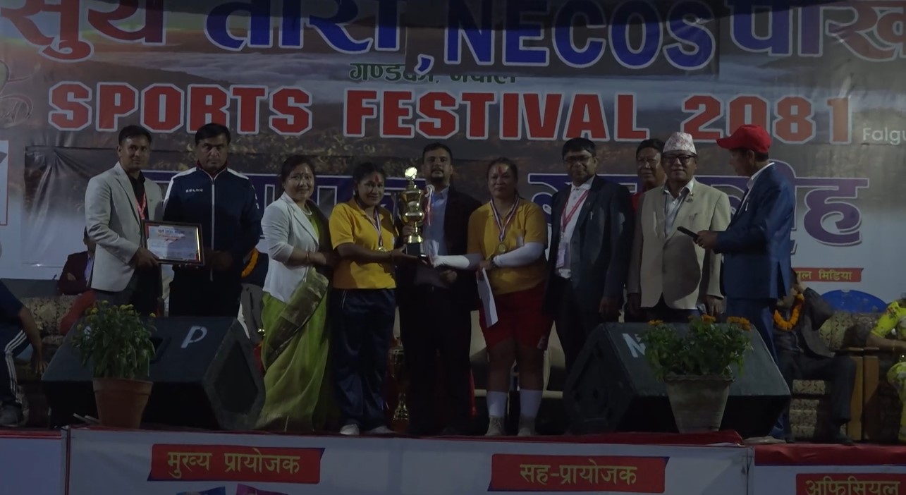 पोखरा ।दोस्रो संस्करणको सूर्य तारा खेल महोत्सव २०८१ अन्तरगत नेकोस कप फुटबल प्रतियोगिताको उपाधि गन्नी फुटबल क्लबले जितेको छ । शनिबार भएको फाइनल प्रतिष्पर्धामा आयोजक सूर्य तारा क्लबलाई ३–० गोल अन्तरले पराजित गर्दै गन्नीले उपाधि जितेको हो । उपाधि विजेता गन्नीले ४ लाख ४ हजार ४ सय ४४ रुपैयाँ सहित सिल्ड मेडल र प्रमाणपत्र हात पार्यो । उपविजेता बनेको सूर्य ताराले २ लाख २ हजार २ सय २२ रुपैयाँ सहित सिल्ड मेडल र प्रमाणपत्र प्राप्त गर्यो । प्रतियोगितामा सूर्य ताराका राजेश राईले वेस्ट प्लेयर बन्दै १५ हजार सहित ट्रफी मेडल र प्रमाणपत्र हात पार्न सफल भए । फुटबल प्रतियोगितामा १० टिमको सहभागिता रहेको थियो ।