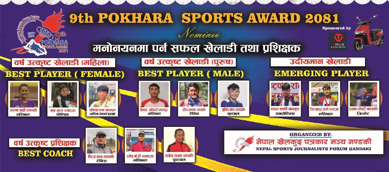 नवौं संस्करणको यो अवार्डमा गण्डकी प्रदेश सरकार, राष्ट्रिय खेलकुद परिषद, प्रदेश खेलकुद परिषद गण्डकी र पोखरा महानगरपालिकाको विशेष सहयोग रहेको छ । त्यस्तै सहारा क्लब पोखरा, टाईगर ग्रुप अफ पोखरा नेपाल, निट डेन्टल केयर प्रालि, सिटीजन फर्निचर, भूतपूर्व खेलाडी मञ्च नेपाल, जिल्ला एथ्लेटिक्स संघ कास्की, मदन भण्डारी स्पोर्टस् एकेडेमी, हेमबहादुर पुन स्मृति प्रतिष्ठान नेपाल, बुम¥याङ रेष्टुरेण्ट, एन्फा गण्डकी, पोखरा पिज्जा हाउस, सोल्टी पिउने पानी र यती एयरलाईन्सलगाएत सहयोगी रहने मञ्चले जनाएको छ ।