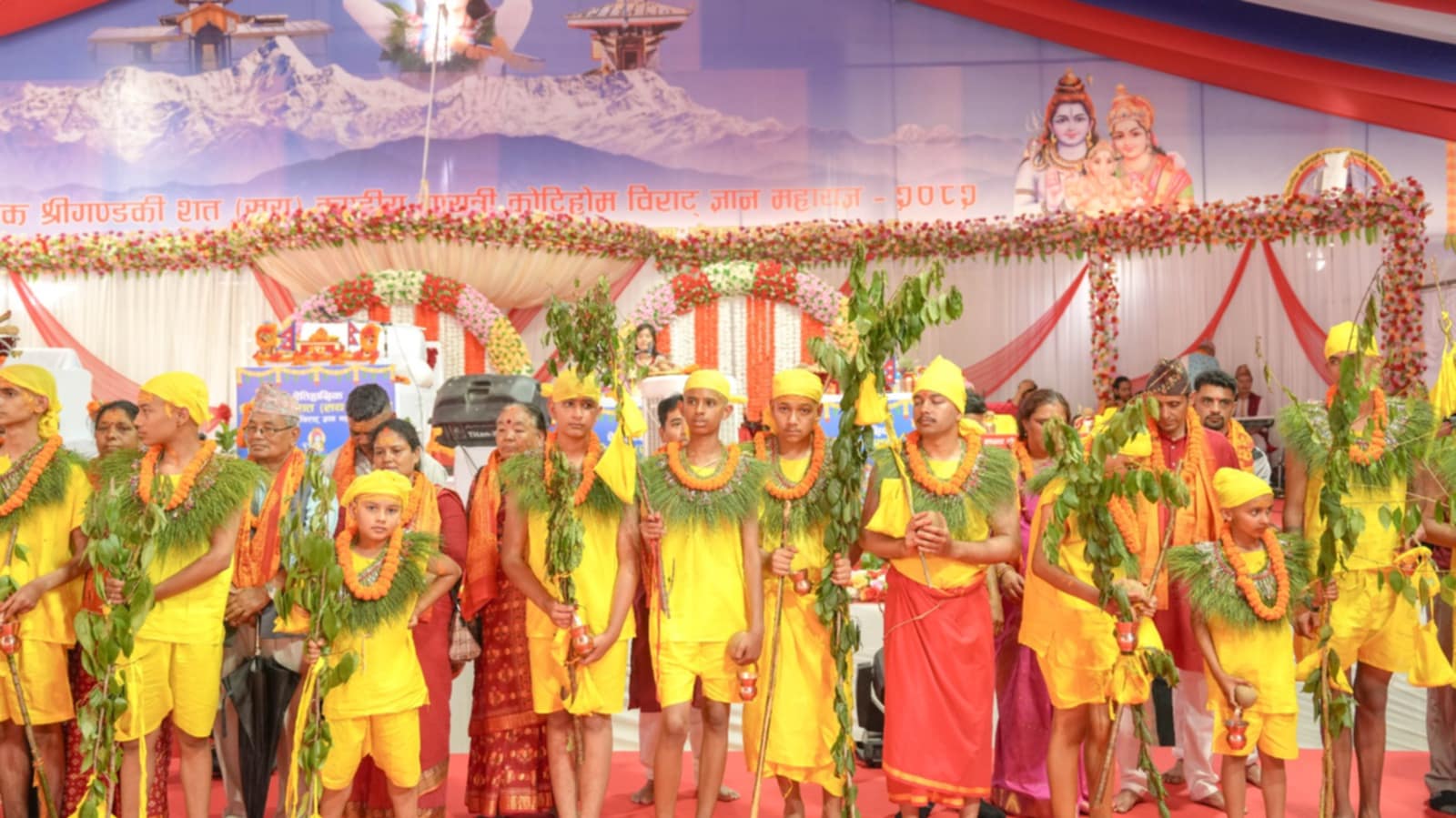 हवन कुण्डको मुल मण्डपमा महायज्ञका सङ्कल्पकर्ता वाल योगेश्वर विजय श्रीकृष्ण मूर्तिजीका बुबा मनिराम भण्डारी र आमा जानका भण्डारी रहेका छन् भने अरू मण्डपमा ३÷३ जना ब्राह्मणले नृत्य हवन गरिरहेका छन् ।