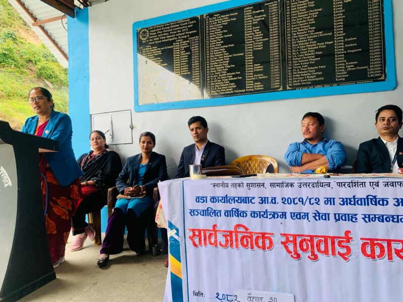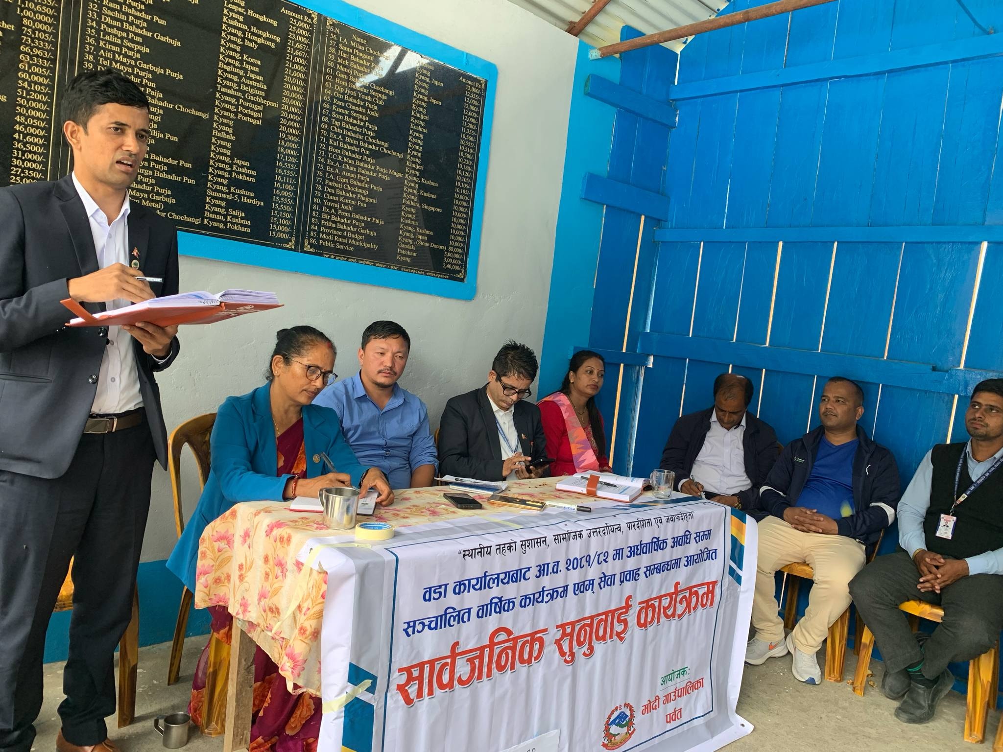 गाउँपालिकाले चालु बर्षको समिक्षा सहित आगामी बर्षको योजना छनौट, नीति तथा बजेट योजना निर्माणको लागि वडाबासीहरुसंग सुझाब संकलन गर्नका लागि सार्वजनिक सुनुवाई कार्यक्रमको आयोजना गरेको हो ।