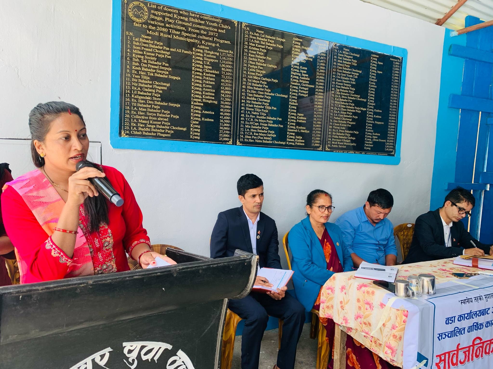 वडा न ४ का वडाअध्यक्ष मोहन चोचाङ्गी को अध्यक्षतामा सम्पन्न कार्यक्रममा वडा सचिव कृष्ण सुबेदीले बार्षिक कार्यक्रम र सेवा प्रवाहको अवस्था प्रस्तुत गर्नुभएको थियो, भने कार्यपालिका सदस्य लक्ष्मी बिकले स्वागत मन्तब्य राख्नुभएको थियो । कार्यक्रमको सहजीकरण सञ्चारिका समुह पर्वतले गरेको थियो ।
