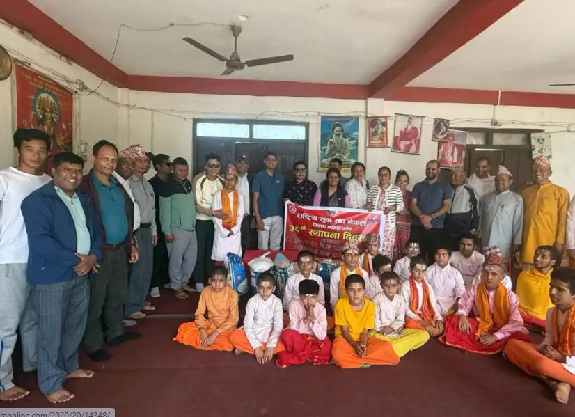 पर्वत । राष्ट्रिय युवा संघ नेपालको ३६ औं स्थापना दिवसको अवसरमा राष्ट्रिय युवा संघ नेपाल, पर्वतले कुश्मा नगरपालिका–५ स्थित गुप्तेश्वर वेदबेदांग संस्कृत पाठशालामा खाद्यान्न वितरण गरेको छ ।