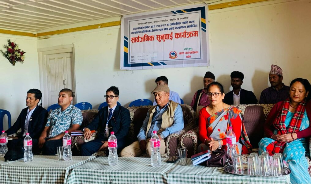 पर्वत । मोदिगाउँपालिका वडा नम्बर ८ चित्रेमा सार्वजनिक सुनुवाइ कार्यक्रम सफलतापूर्वक सम्पन्न भएको छ। गाउँपालिकाबाट सञ्चालन भइरहेका कार्यहरूबारे प्रत्यक्ष रूपमा जनतालाई जानकारी दिन र आगामी वर्षको योजनाका लागि सुझाव तथा माग संकलन गर्न पालिकाले सम्पूर्ण ८ वडामा यस्ता कार्यक्रम सञ्चालन गरिरहेको हो।