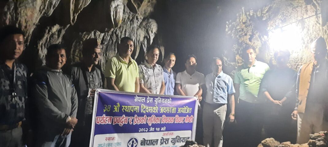 पर्वत,। नेपाल प्रेस युनियनको ३४ औं स्थापना दिवसको अवसरमा गुप्तेश्वर गुफामा आयोजना गरिएको ूपर्यटन प्रवर्द्धन र प्रेसको भूमिकाू विषयक विचार गोष्ठी सफलतापूर्वक सम्पन्न भएको छ।