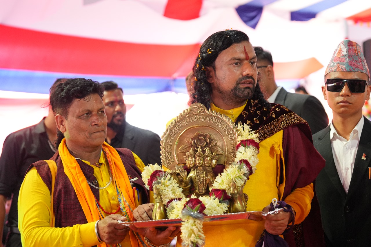 लामो शंखघोष गरेका अधिकारीलाई कोटीहोमका संकल्पकर्ता बालयोगेश्वर विजय कृष्णमूर्ति महाराज र अन्तर्राष्ट्रिय भागवत वाचिका देवी प्रतिभाले सम्मान गरेका थिए । कोटीहोम स्थलमा बिहीबार माता गायत्रीको मूर्ति स्थापना गरिएको छ । संकल्पकर्ता विजय कृष्णमूर्तिले गायत्रीको मूर्ति स्थापना गरेका छन् ।