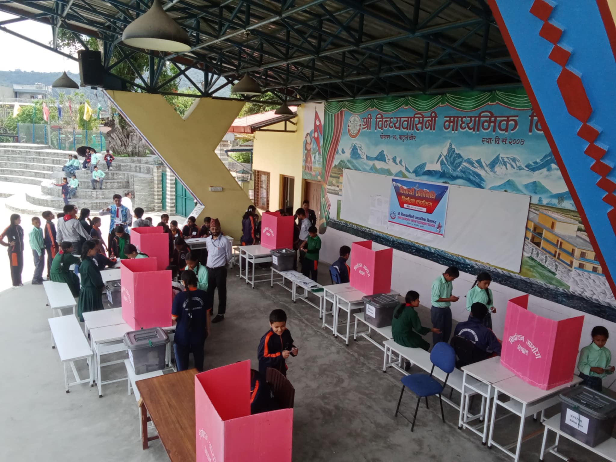 कक्षा ४ देखि १० सम्मका सात सय पचपन्न जना विद्यार्थी मतदाताले भाग लिएको सो निर्वाचनमा कुल ६ सय ६९ मत खसेकोे मुख्य निर्वाचन आयुक्त जयराम पुनले वताए । विहान ११ वजेवाट शुरु भएको मतदान दिउँसो २ वजेसम्म चलेको थियो ।मतदान लगत्तै खट्टिएका विद्यार्थी पर्यवेक्षक, सुरक्षाकर्मि र प्रत्यासीका प्रतिनिधीको रोहवरमा मुचुल्का गरी कडा सुरक्षा घेराका विच मतगणना गरिएको थियो । ३ वटा मतदान केन्द्रमा मतदान अधिकृत र सहायक मतदान अधिकृतका रुपमा १६ जना विद्यार्थी खट्टिएका थिए ।निर्वाचनमा विद्यालय क्याप्टेन तर्फ २ जना, उप क्याप्टेनमा ४ जना,वाल क्लवको अध्यक्षमा २ जना र रेडक्रस सर्कलको अध्यक्षमा ३ जना गरी ४ पदका लागी ११ जना चुनावी प्रतिस्पर्धामा उत्रिएका थिए ।
