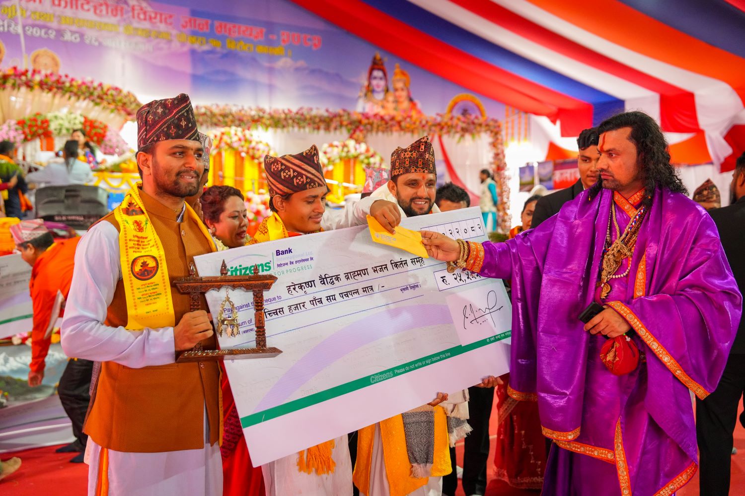 त्यस्तै राष्ट्रिय लोक भजन चुट्का भुमही नवलपरासी उत्कृष्ट पुरुष स्वर, सृजना भजन समूह माथागडी पाल्पा उत्कृष्ट महिला स्वर, भगवती भजन समूह पोखरा–१४ खाल्टेमसिना उत्कृष्ट अनुशासन, ओम खहरे स्वर भजन समूह, मकवानपुर मनहरी उत्कृष्ट भेसभुसा, श्री गोपाल सिद्ध लोक भजन समूह प्राणिनी समाज उत्कृष्ट वाध्ययन्त्र, ओमकारेश्वर भजन समूह तार्केश्वर, काठमाडौँ वैदिक सनातन प्रस्तुति, सनातन वाल समूह नवलपुर गैँडाकोट उत्कृष्ट वाल कलाकार र हरेकृष्ण बौद्धिक ब्राह्मण भजन कीर्तन समूह गैँडाकोट उत्कृष्ट सन्देशमूलक प्रस्तुति घोषित भएका थिए । यी सवै समूहले नगद २५ हजार ५ सय ५५ रुपैयाँ प्राप्त गरे । विजयी समूहलाई महायज्ञका सङ्कल्पकर्ता बालयोगेश्वर श्री विजय कृष्णमूर्तिजी महाराजले पुरस्कार प्रदान गरेका थिए ।