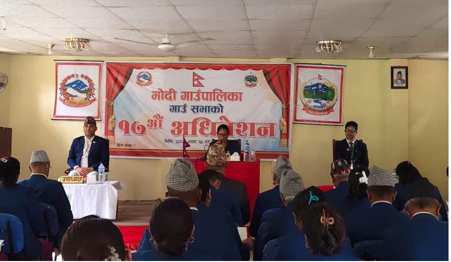 पर्वत । जिल्लाको मोदी गाउँपालिकाले आगामी आर्थिक बर्षको नीति कार्यक्रम तथा बजेट गाउँ सभामा प्रस्तुत गरेको छ । गाउँपालिकाको १७ औं अधिवेशनमा अध्यक्ष हिरादेवी शर्मा आगामी बर्षको नीति कार्यक्रम प्रस्तुत गर्नुभयो ।