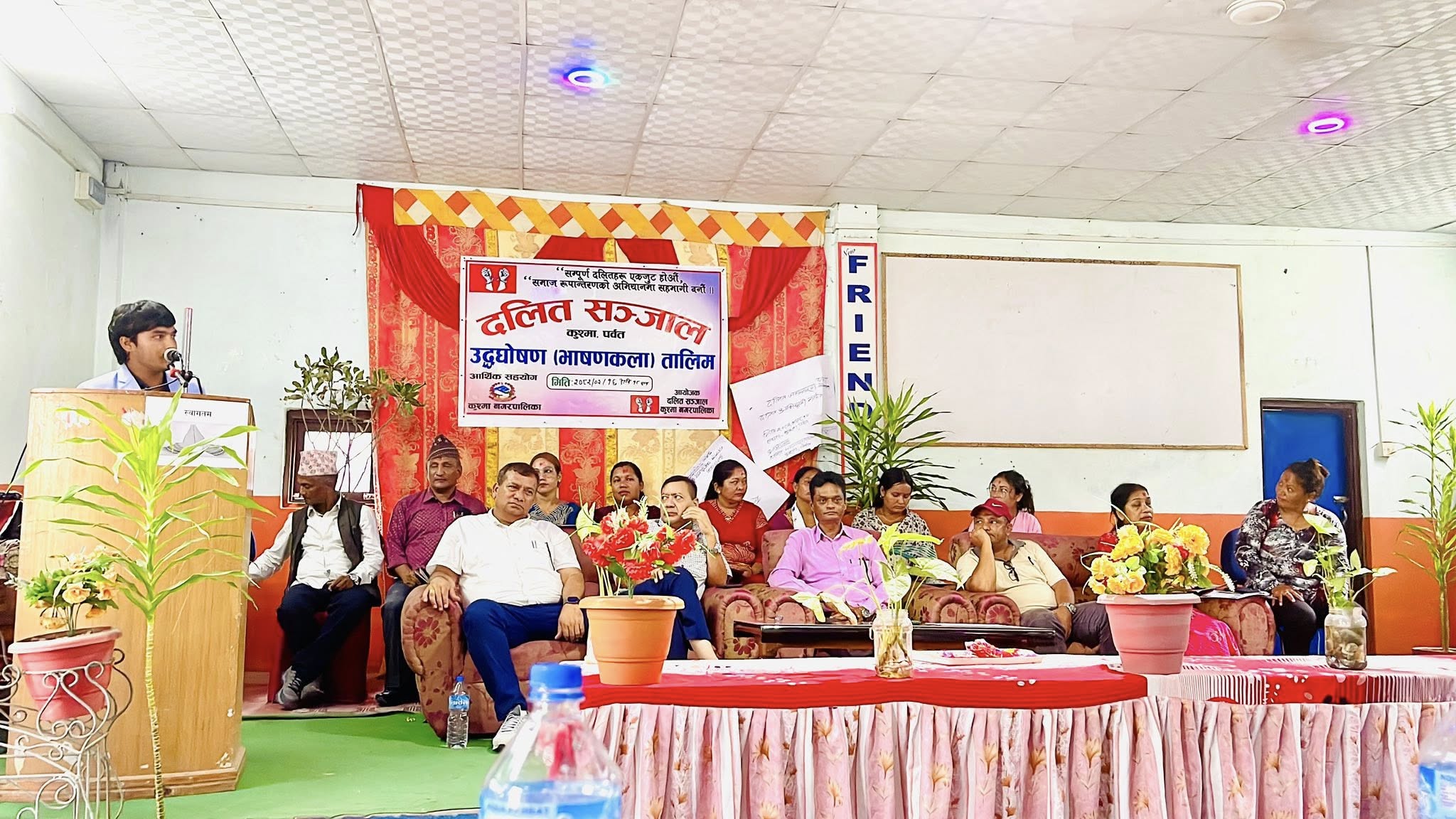 कार्यक्रममा बोल्दै कुश्मा नगरपालिका वडा नं. ६ का वडा अध्यक्ष तथा सामाजिक विकास समितिका संयोजक ईश्वर गिरीले बोल्ने कला महत्त्वपूर्ण कला भएको बताउदै बोल्न सक्ने मान्छे जुनसुकै क्षेत्रमा अब्बल र सफल हुने बताउनुभयो ।दलित समुदायको उत्थानका लागि नगरपालिकाले विभिन्न कार्यक्रमहरु संचालन गरेको र आगामी दिनहरूमा पनि त्यस्ता कार्यक्रमलाई निरन्तरता दिने उहाँले बताउनुभयो । कार्यक्रममा कार्यपालिका सदस्य लखन सुनार, प्रशिक्षक दिपेश बि. पोख्रेल, सहभागीको तर्फबाट कृष्ण बहादुर नेपाली र सीता परियार लगायतले मन्तव्य व्यक्त गर्नुभएको थियोे ।