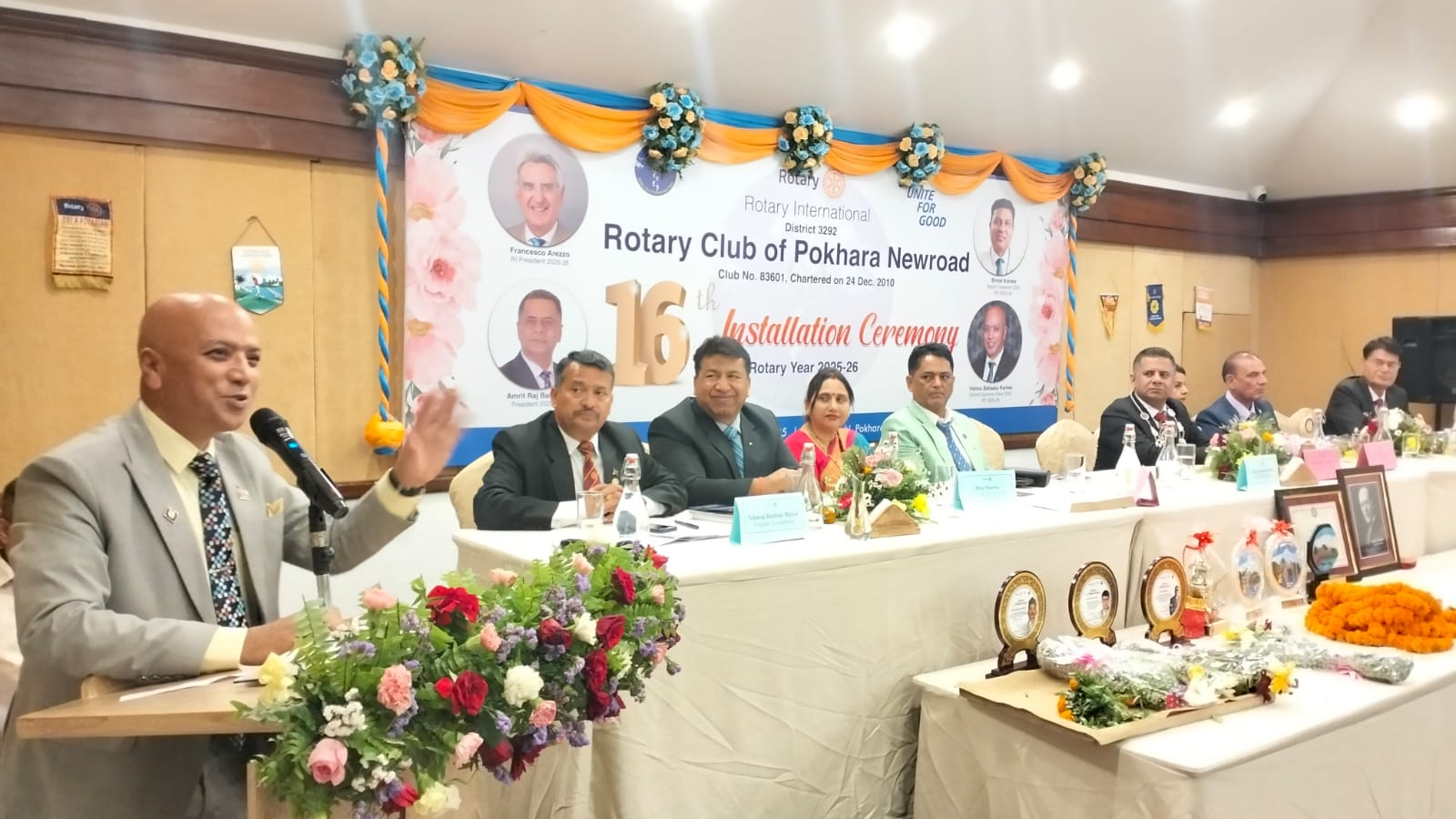 पोखरा । रोटरी क्लब अफ पोखरा न्युरोडको १६औं वार्षिक पदास्थापना समारोह बुधबार पोखरामा सम्पन्न भएको छ । कार्यक्रममा क्लबका नयाँ अध्यक्ष तथा कार्यकारी समितिका सदस्यहरूले पद तथा गोपनियताको सफत ग्रहण गरे।