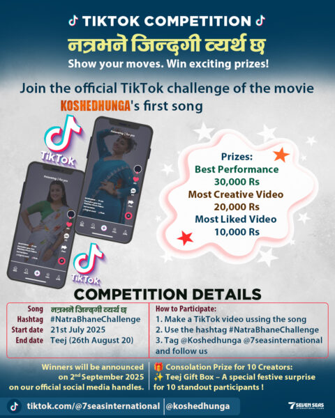 यस्तै, निर्माणपक्षले यो गीतमा टिकटक प्रितस्पर्धा समेत घोषणा गरेको छ । आजैदेखि खुल्ला गरिएको प्रितस्पर्धा अगस्ट २० सम्म सहभागीले भागलिन पाउनेछन् । टिमका अनुसार सहभागीले भाग लिदाँ ह्यास्ट्याग नत्र भने जिन्दगी व्यर्थ छ मेन्सन गर्नु पर्ने छ । यसमा बेस्ट पफमेन्सले ३० हजार, मोस्ट क्रियटिभ भिडियोले २० हजार र मोस्ट लाइक भिडियोले १० हजार पाउने छन् ।सरोज पौडेलले निर्देशन गरेको चलचित्र ‘कोशेढुङ्गा’ भदौ १२ गते रिलिज हुँदै छ । ‘पूर्ण बहादुरको सारंगी’का निर्देशक पौडेलले निर्देशन गरेको भएकाले ‘कोशेढुंगा’ चलचित्र प्रतिक्षित सिनेमा बनेको छ ।