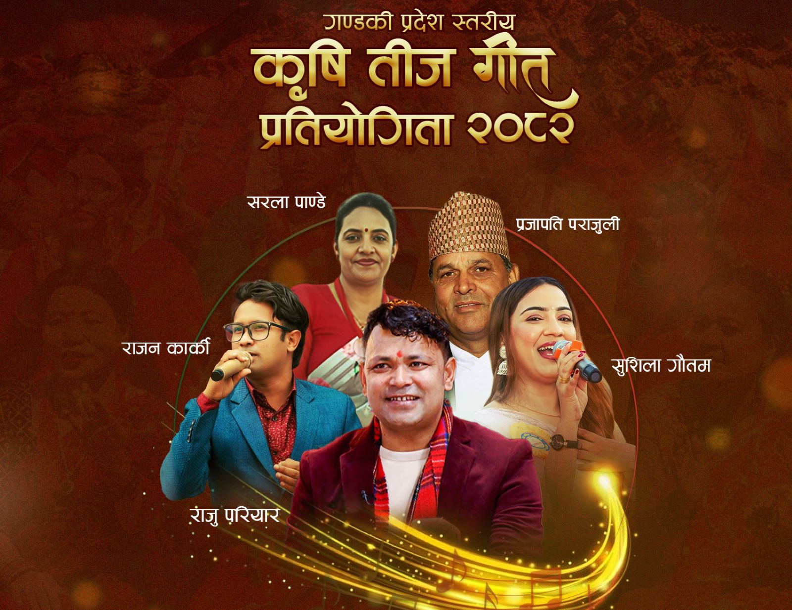 पोखरा । एपोलो पेन्ट्स पिजेन्स गण्डकी प्रदेश स्तरीय कृषि तीज गीत प्रतियोगिता हुने भएको छ । पब्लिक फोरके टेलिभिजनको आयोजना एवम् प्रदेश कृषि, भूमि व्यवस्था तथा सहकारी मन्त्रालयको समन्वयमा पोखरा उद्योग वाणिज्य संघको सभाहलमा भदौं ५ गते पोखरामा आठौं संस्करणको कृषि तीज गीत प्रतियोगिता हुन लागेको हो ।