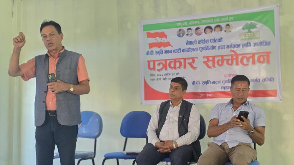 पर्वत । नेपाली काँग्रेस पर्वतले भदौ २३ र २४ गतेको जेन-जी आन्दोलनबाट क्षति भएको पार्टी कार्यालय पुनर्निर्माण गर्न शुरू गरेको छ । नेपाली काँग्रेसले क्षतिग्रस्त भवनको पुनर्निर्माणको लागि लोकतान्त्रिक उद्योग वाणिज्य संघ पर्वतका अध्यक्ष शिव शर्मा पौडेलको संयोजकत्वमा नयाँ समिति बनाएर पुनर्निर्माण थालेको शुक्रबार पार्टी कार्यालयमा आयोजित पत्रकार सम्मेलनमा जानकारी दिइयो । पुनर्निर्माण समितिले क्षतिको विवरण २१ लाख १९ हजार निकालेको छ ।