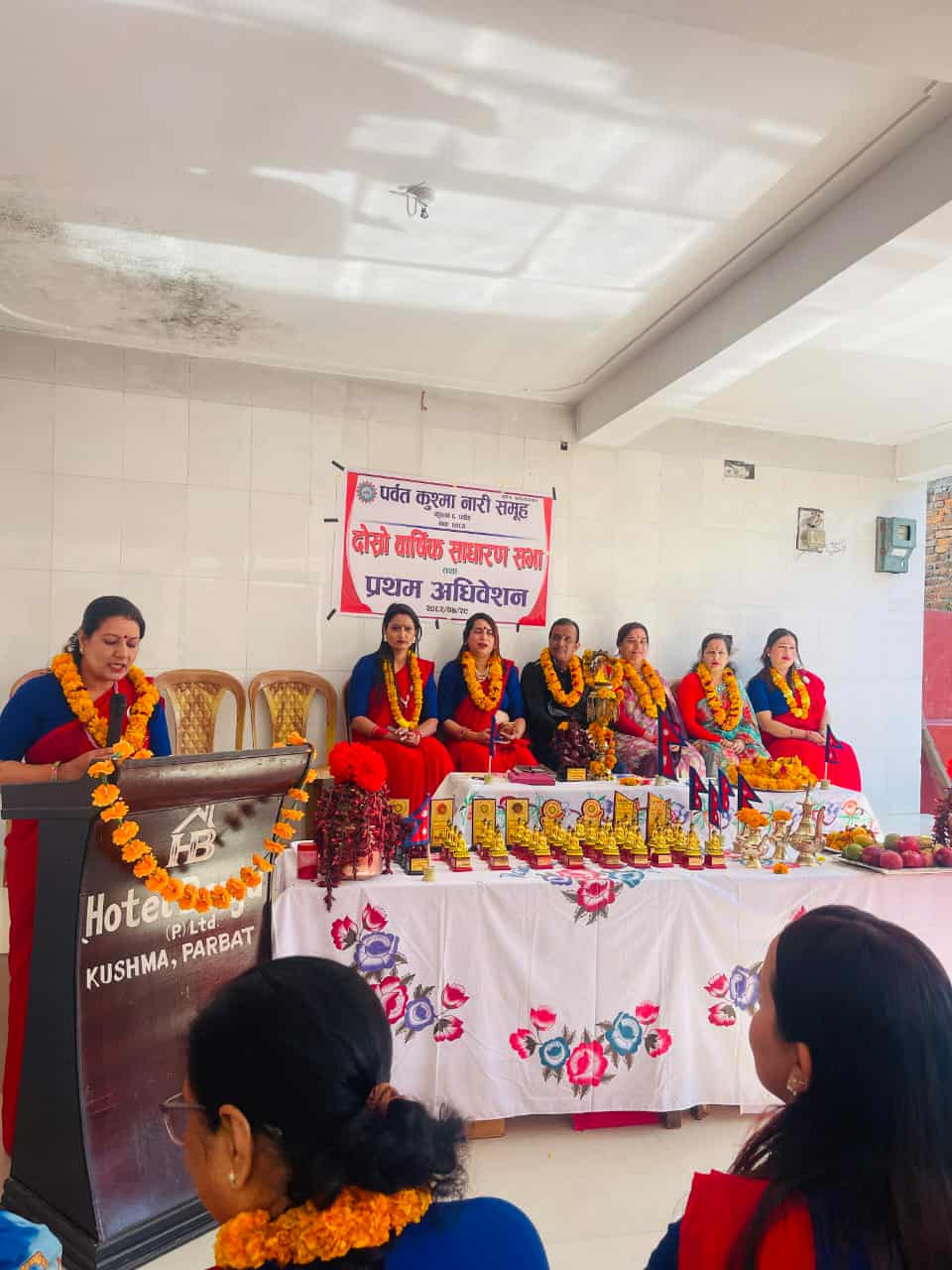 पर्वत । पर्वत कुश्मा नारी समूहको दाेस्राृ साधारण सभा तथा प्रथम अधिवेशन भव्यताका साथ सम्पन्न भएको छ। अधिवेशनले बादल कुमारी शर्मा भुसालको अध्यक्षतामा नयाँ कार्यसमिति चयन गरेको छ। कार्यक्रमको अध्यक्षता समूहकी निवर्तमान अध्यक्ष अनिता सापकोटाले गर्नुभएको थियो।