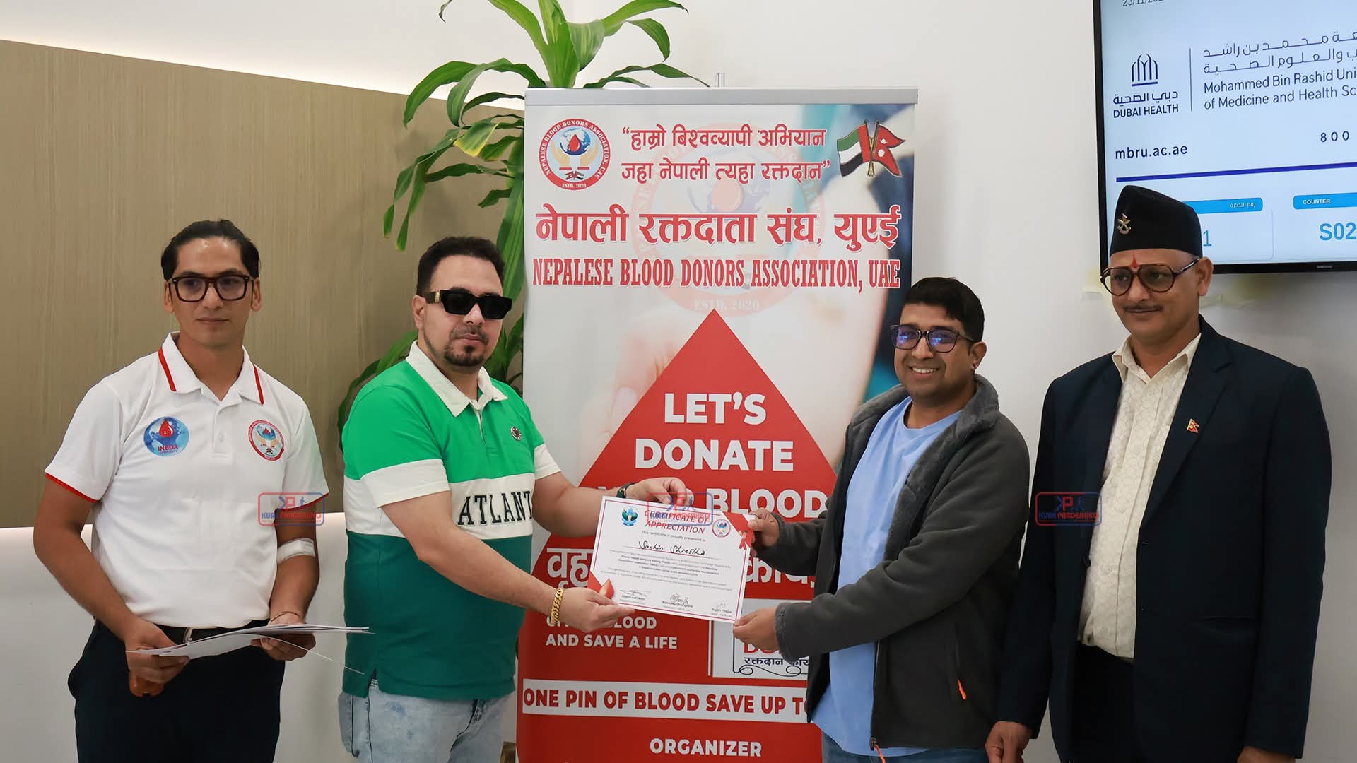 दुबई,सचिन्द्र श्रेष्ठ। अन्तर्राष्ट्रिय नेपाली रक्तदाता संघको भगिनी संस्था नेपाली रक्तदाता संघ यूएईको समन्वय तथा प्रवास नेपाली सम्पर्क बिभागको मुख्य आयोजना एबं देबदह सेवा समाज यूएईको सहयोगमा नोभेम्बर २३ मा बृहत रक्तदान कार्यक्रम सम्पन्न गरेको छ। दुबई हेल्थ अथरिटी (डीएचए) सँगको सहकार्यमा उक्त कार्यक्रम सम्पन्न भएको हो।यस कार्यक्रमलाई एभरेस्ट रेस्टुरेन्टले आर्थिक सहयोग गरेको थियो।