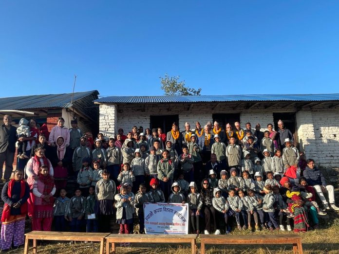समाजसेवी यादवमणि भट्टराईको आर्थिक सहयोगमा विद्यालयका ६६ जना विद्यार्थी र ११ जना शिक्षक कर्मचारीलाई १ लाख १५ हजार बराबरको न्यानो कपडा (ज्याकेट) वितरण गरिएको मोती सामुदायिक पुस्तकालय ट्याग परियोजना कोडिनेटर रमा भुसाल पोख्रेलले जानकारी दिनुभयो ।
