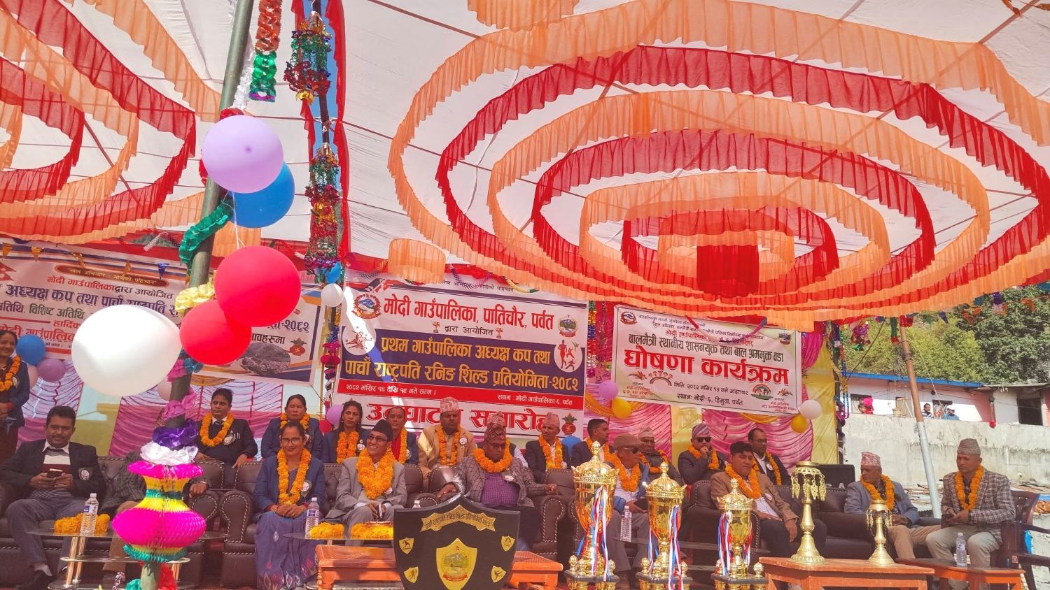 पर्वत । खर्च मितब्ययीताको प्रयास गरी रहेको पर्वत जिल्लाको मोदी गाउँपालिकाले एकै दिन एउटै मञ्चबाट ३ वटा औपचारिक कार्यक्रम सम्पन्न गरेको छ । गाउँपालिकाको नियमित कार्यक्रम अन्तर्गत राष्ट्रपति रनिङ शिल्ड, विशेष कार्यक्रम अध्यक्ष कप तथा बार्षिक कार्यक्रममा समावेश बालमैत्री वडा घोषणा कार्यक्रम एउटै मञ्चको प्रयोग गरी सञ्चालन गरेको हो ।