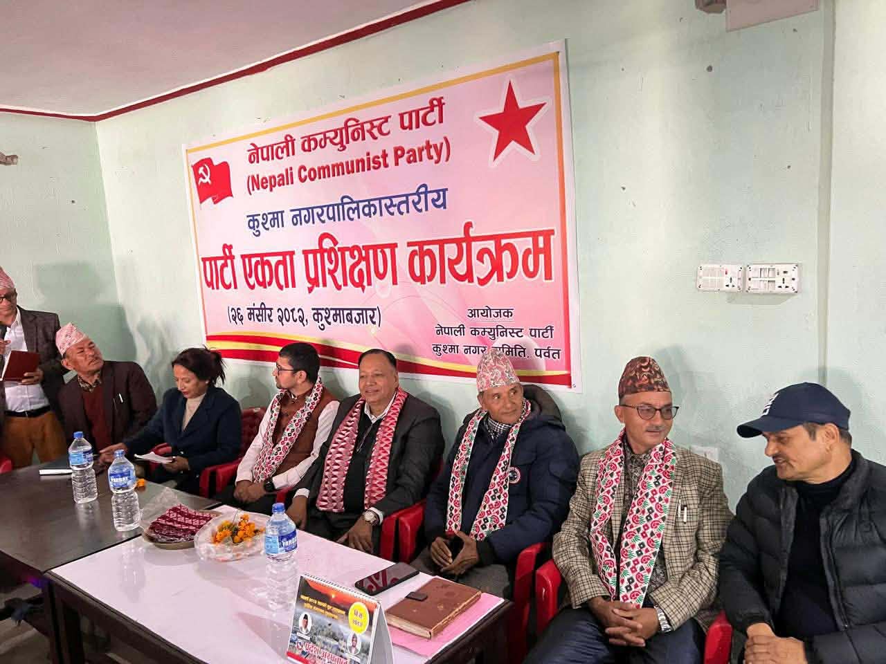 पर्वत। नेपाली कम्युनिष्ट पार्टी कुश्मा नगरपालिका स्तरीय प्रशिक्षण एवं पार्टी एकता सन्देश कार्यक्रम कुश्मा बजारमा सम्पन्न भएको छ ।