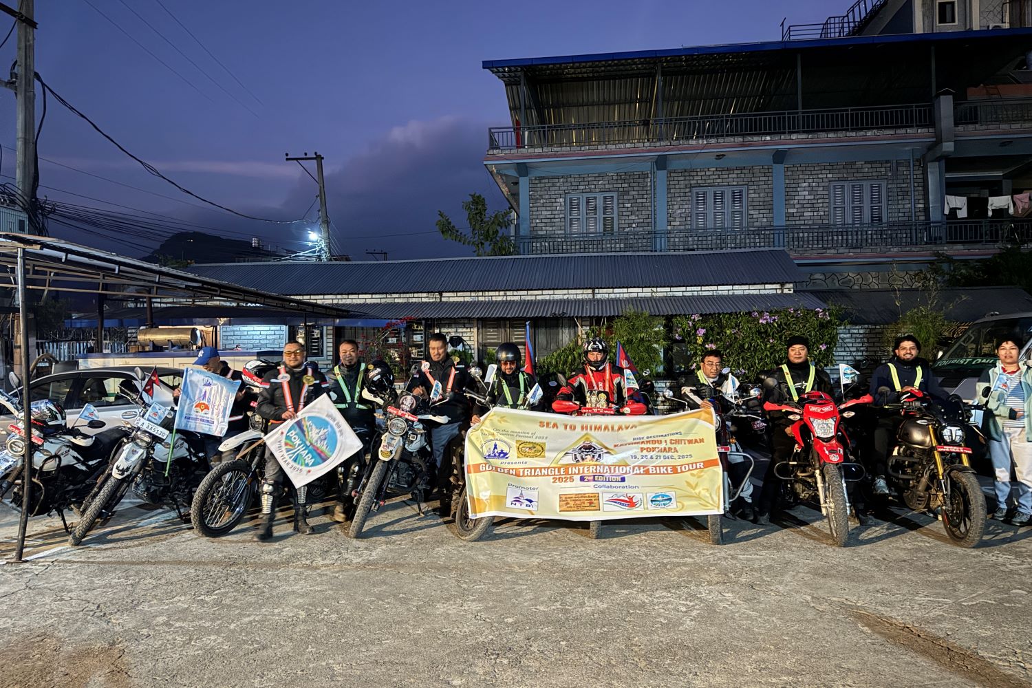 पोखरा।गोल्डेन ट्र्यांगल अन्तर्राष्ट्रिय बाइक टूर टोली पोखरा आइपुगेको छ । काठमाडौं, चितवन हुँदै पोखरा आइपुगेको टोलीलाई शनिबार पर्यटन व्यवसायी महिला संघ नेपाल (टेवान) ले स्वागत गरेको छ ।