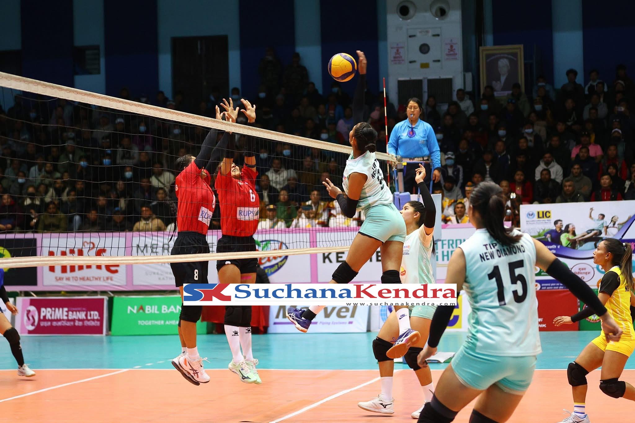 साविक विजेता नेपाल पुलिसलाई हराउँदै न्यु डायमण्डले शेरबहादुर खड्का स्मृति राष्ट्रिय महिला भलिबलको च्याम्पियन बनेको छ। त्रिपुरेश्वरस्थित राष्ट्रिय खेलकुद परिषद् (राखेप) कभर्ड हलमा शनिबार सम्पन्न फाइनलमा न्यु डायन्डले विभागीय टोली पुलिसलाई ३–१ को रोमान्चक सेटमा पराजित गरेको हो। खेलको पहिलो र दोस्रो सेटमा न्यु डायमन्डले २५–२२ र २५–१८ ले जितेको थियो। तेस्रो सेट भने नेपाल पुलिसले २५–१५ ले जित्यो र खेलमा फर्किने आशा देखायो । उक्त सेट पुलिसले आफ्नो नाममा पारेसँगै खेल चौंथो सेटसम्म धकेलिएको थियो। तर, न्यु डायन्डले उत्कृष्ट पुनरागमन गर्दै २७–२५ ले जितेसँगै उपाधि हात पार्यो।