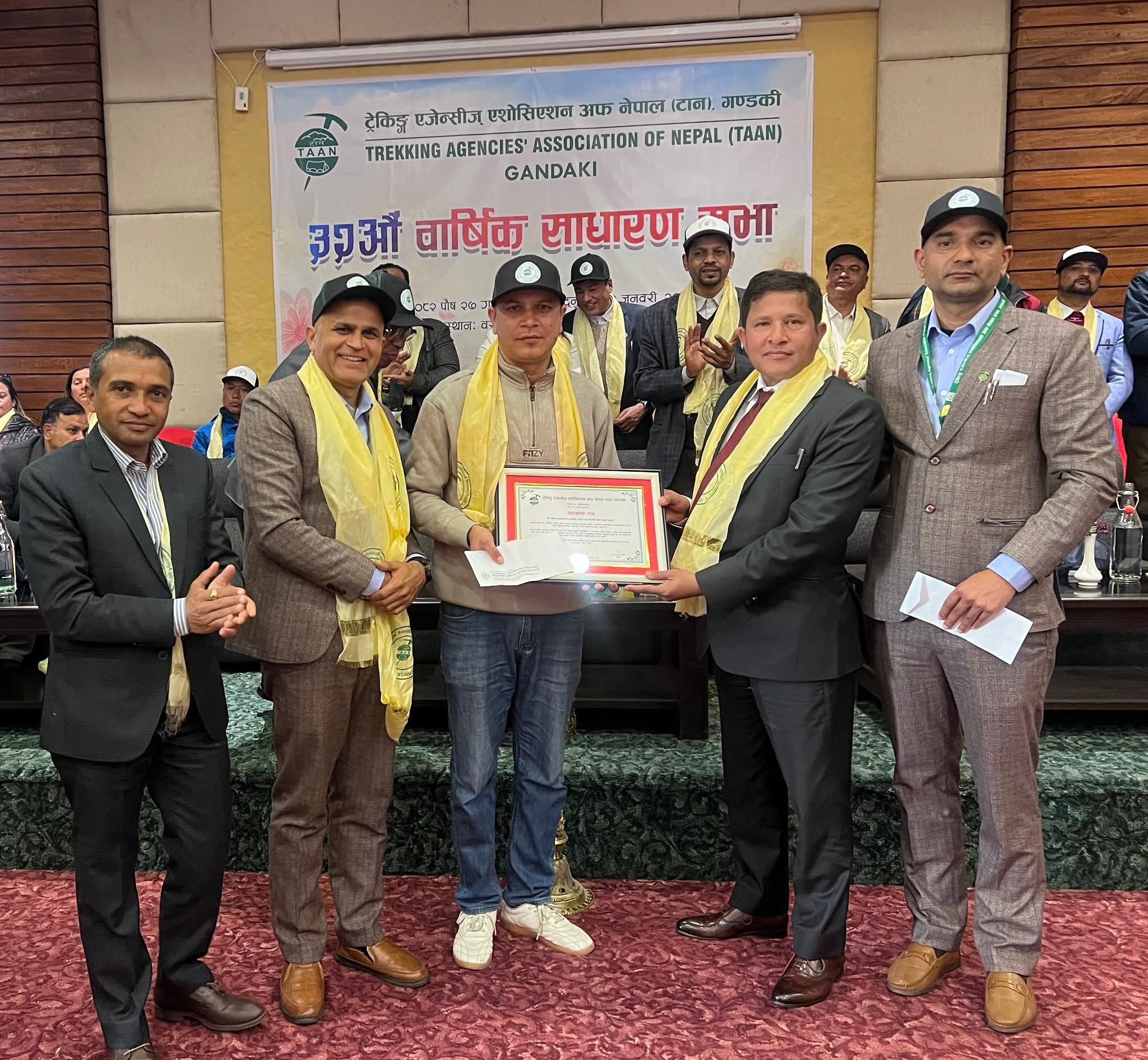 पोखरा ।पर्यटन क्षेत्रको विकासमा पत्रकारिता मार्फत उल्लेखनीय योगदान पुर्याए बापत ट्रेकिङ एजेन्सिज एसोसिएसन अफ नेपाल (टान) गण्डकीले पत्रकार सुमन ढुंगानालाई सम्मान गरेको छ । टान गण्डकीको ३२ औं साधारण सभाको अवसर पारेर टान गण्डकीले ढुंगानालाई सम्मान गरेको हो ।