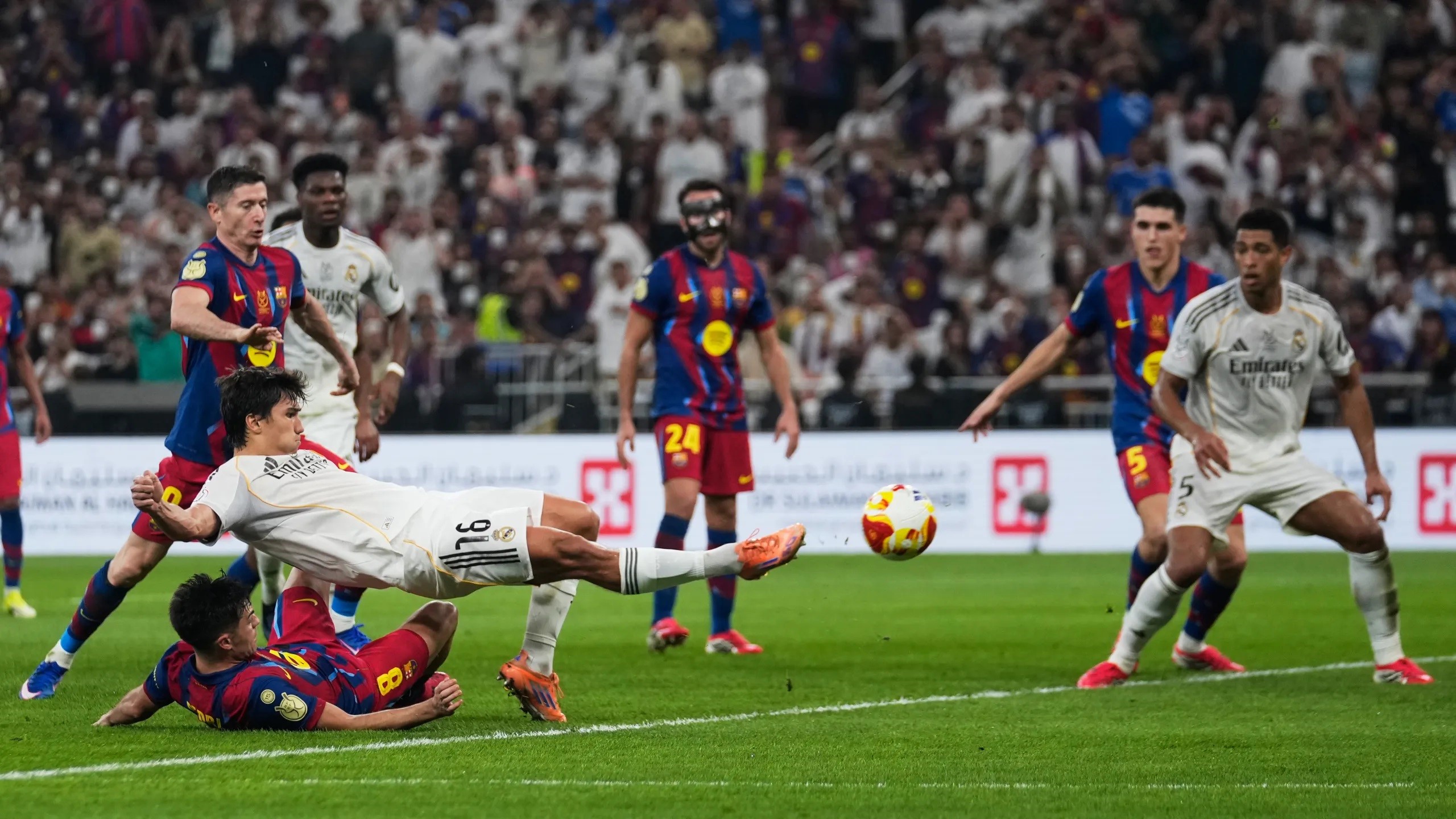 पहिलो हाफको अन्त्यतिर खेल निकै रोचक बन्यो। राफिन्हाले ३६औँ मिनेटमा गोल गर्दै बार्सिलोनालाई अग्रता दिलाएका थिए। त्यसपछि थपिएको समयमा दुबै टोलीबाट छिटोछिटो तीन गोल भए र पहिलो हाफ २-२ को बराबरीमा टुंगिएको थियो।पहिलो हाफको इन्जुरी समयको दोस्रो मिनेटमा भिनिसियस जुनियरले उत्कृष्ट दौडपछि बराबरी गोल गरे। उनले १७ खेलपछि रियलका लागि गोल गरेका हुन् । इन्जुरी समयको चौथो मिनेटमा रोबर्ट लेवान्डोस्कीले गोल गर्दै बार्सिलोनालाई फेरि अग्रता दिलाए।