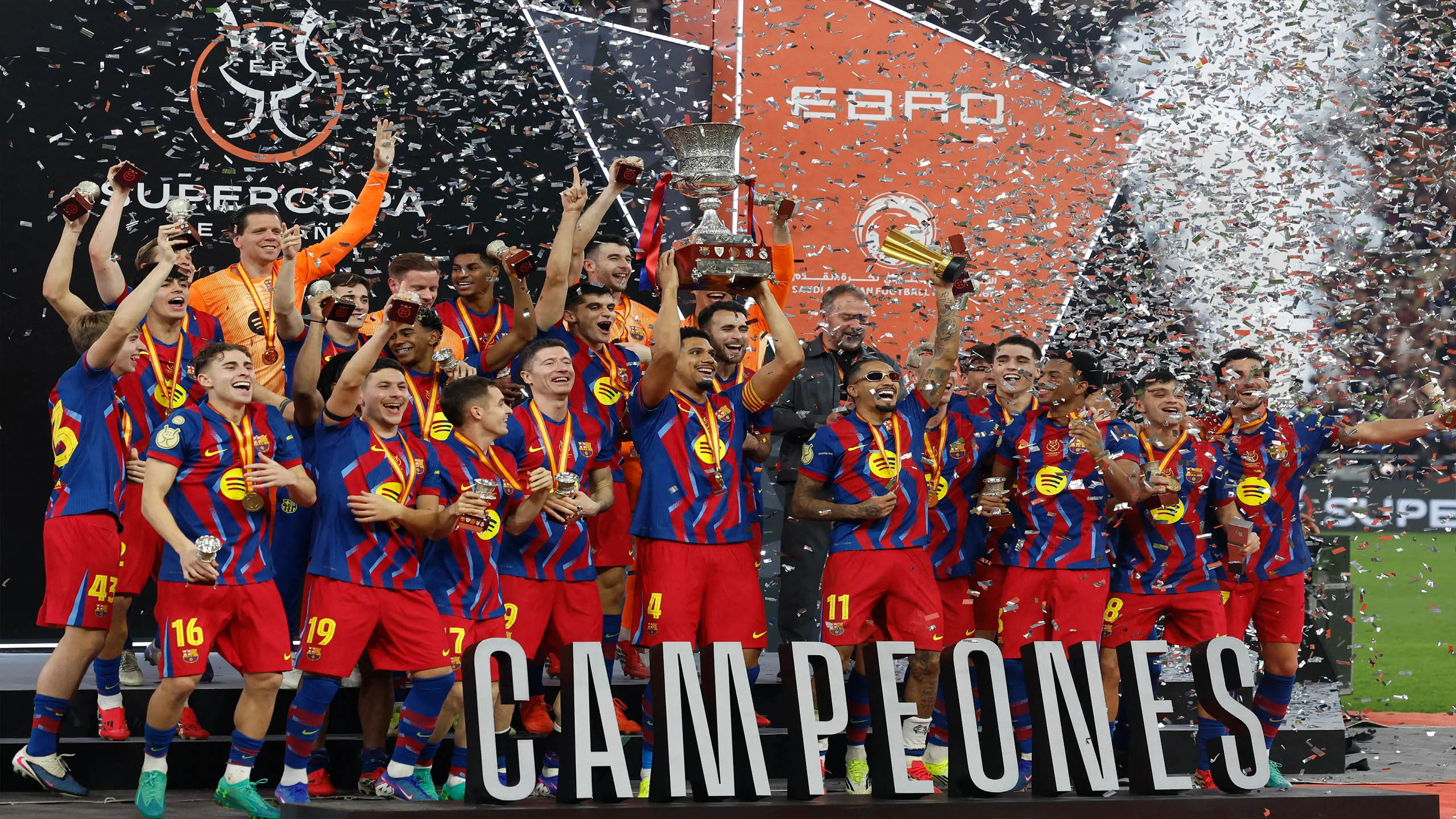 एजेन्सी । स्पेनिस सुपर कपको फाइनलमा राफिन्हाले दुई गोल गरेपछि बार्सिलोनाले कट्टर प्रतिद्वन्द्वी रियल मड्रिडलाई ३–२ ले पराजित गर्दै स्पेनिस सुपर कप जितेको छ। साउदी अरेबियाको जेद्दाहमा भएको रोमाञ्चक खेलमा रियल म्याड्रिडलाई ३-२ ले हराउँदै बार्सिलोनाले लगातार दोस्रो पटक स्पेनिस सुपर कप जितेको हो । यो जितसँगै हान्सी फ्लिकको टोलीले १६औँ पटक स्पेनिस सुपर कप जित्यो। बार्सिलोनाले गत वर्ष पनि फाइनलमा रियललाई हराएको थियो। यसपाली खेलको ७३औँ मिनेटमा राफिन्हाले गरेको गोलनै निर्णायक बन्यो।