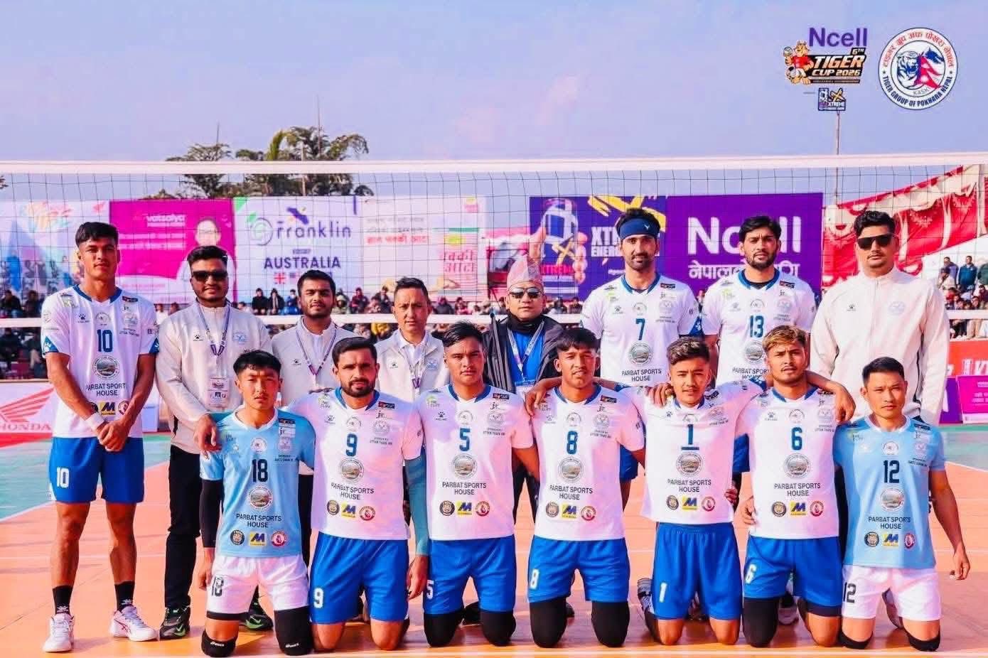 पर्वत । छैटौं टाइगर कप राष्ट्रिय तथा अन्तर्राष्ट्रिय आमन्त्रित क्लव च्याम्पियनसिपमा पुरुषतर्फ पर्वत भलिबल संघले नेपाल पुलिस क्लबमाथि रोमाञ्चक जित निकालेको छ । टाइगर ग्रुप अफ पोखरा नेपालको आयोजनामा पोखरा रंगशालास्थित भलिबल कोर्टमा जारी च्याम्पियनसिपअन्तर्गत आजको अन्तिम खेलमा ३ पाकिस्तानी खेलाडी सम्मेलित पर्वत भलिबलले पुलिसलाई ३–२ को सेटमा स्तब्ध पा¥यो ।