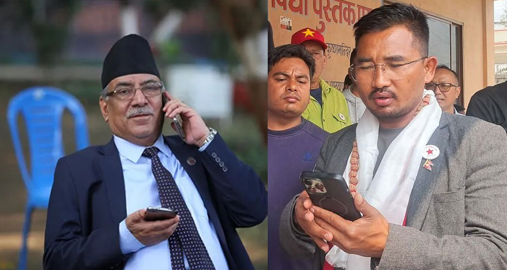 काठमाडौँ । नेपाली कम्युनिस्ट पार्टीका संयोजक पुष्पकमल दाहाल प्रचण्डले झापा क्षेत्र नम्बर ५ का पार्टी उम्मेदवार रञ्जित तामाङलाई फोन गरेका छन् ।
