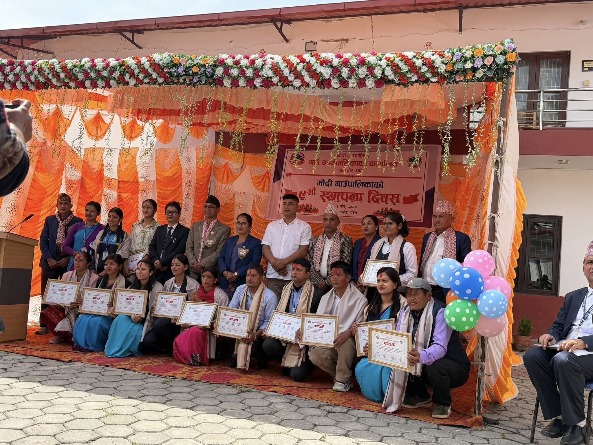 पर्वत । मोदी गाउँपालिकाको ९ औं स्थापना दिवस गाउँपालिका अध्यक्षको अध्यक्षतामा तथा गण्डकी प्रदेश सभा सदस्य माननीय भक्तबहादुर कुँवरको प्रमुख आतिथ्यतामा एक समारोहबीच भव्य रूपमा सम्पन्न भएको छ। कार्यक्रमले गाउँपालिकाको समग्र विकास, उपलब्धि र भावी योजनाबारे व्यापक छलफल समेत गरेको थियो।
